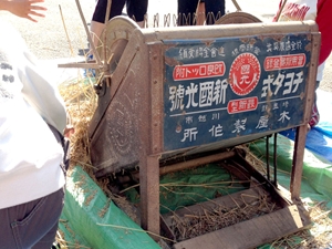 脱穀は足踏み脱穀機、通称ガーコンを使って行いました