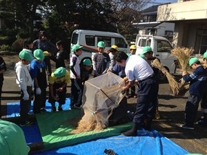 川角小学校の5年生が、育てた稲の脱穀を体験しました