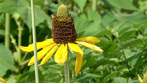 一般的なルドベキアよりも真ん中の部分の盛りあがりが大きく、長い茎の先に咲いた花が印象的です